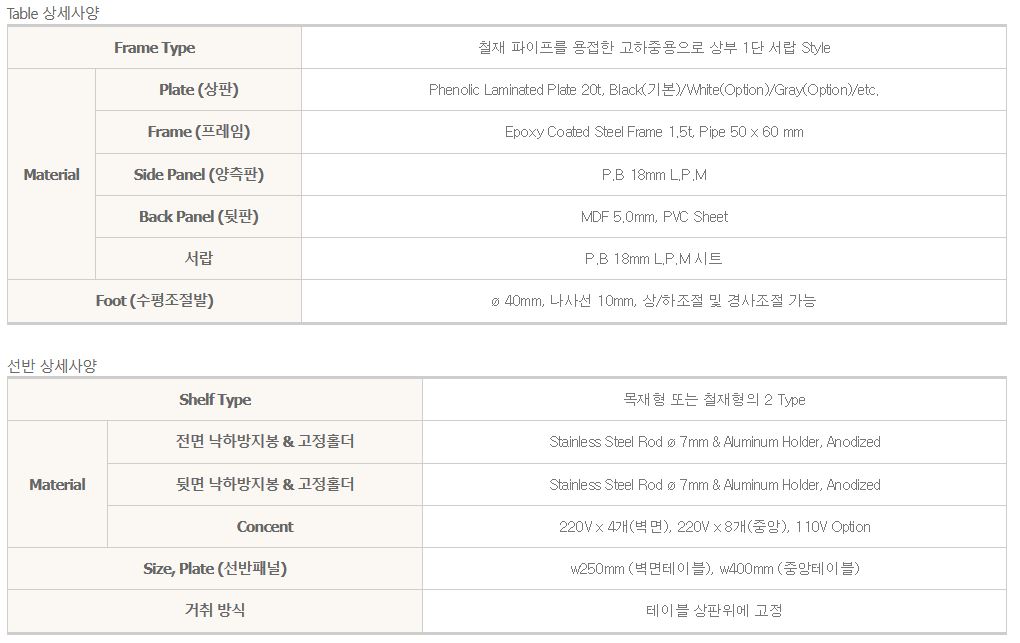 - 기기 분석실이나 천평용 테이블로 주로 사용됨