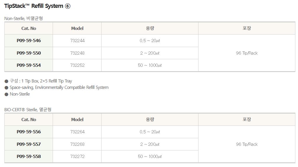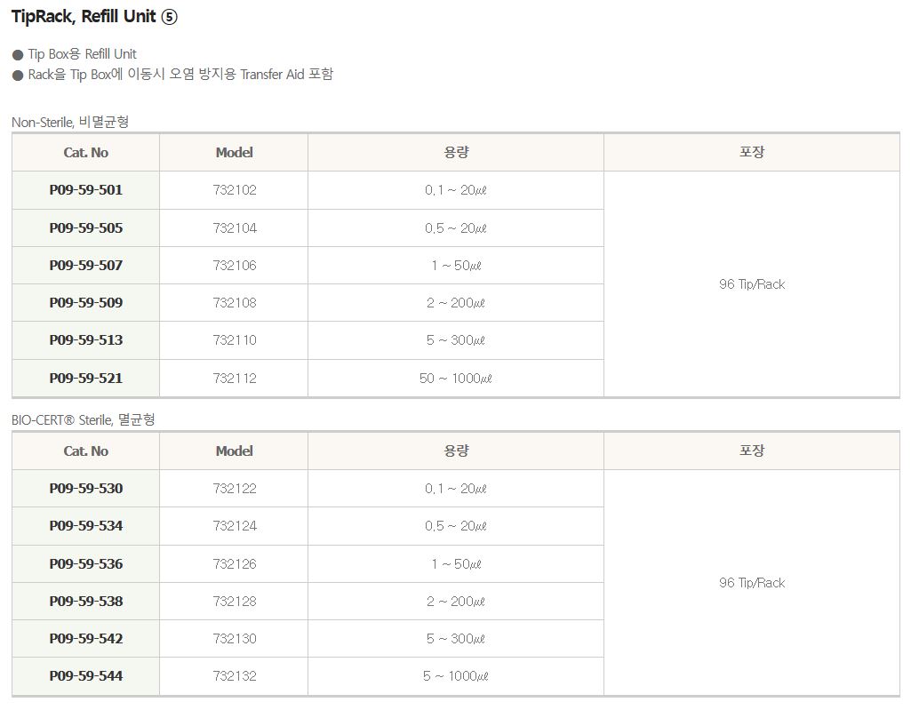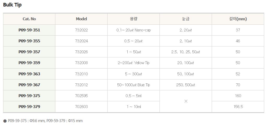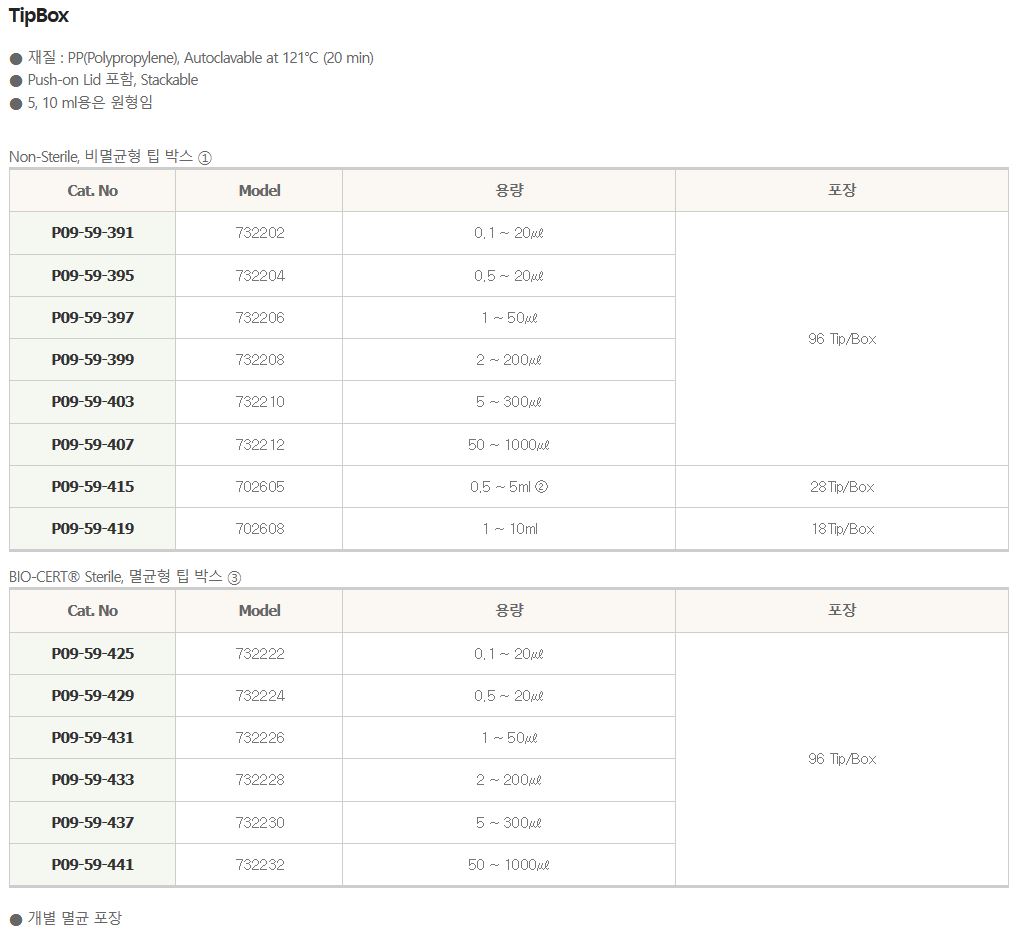 - 20 ~ 1000 ul Tip : Brand Pipette, Most of Pipette type of Gilson®,