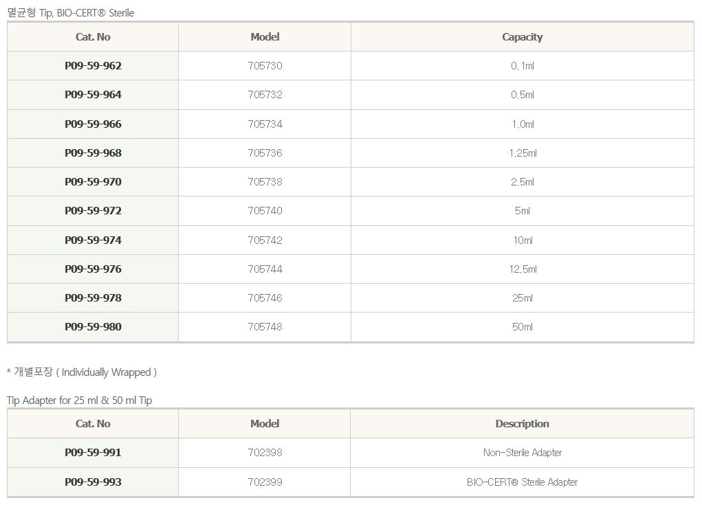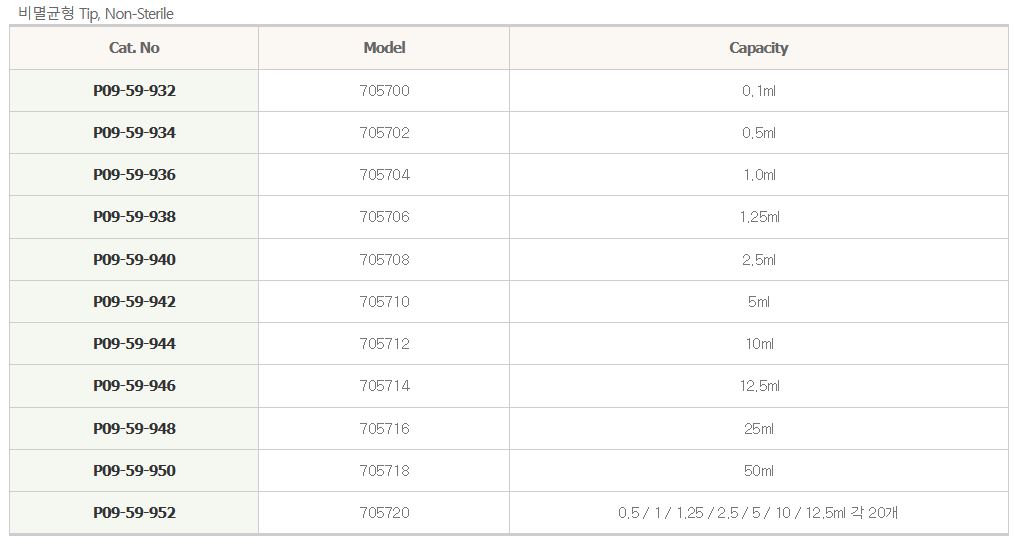 ■ 재질 : PD Cylinder, PE-HD Piston (단, 0.1 ml : LCP)