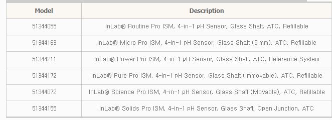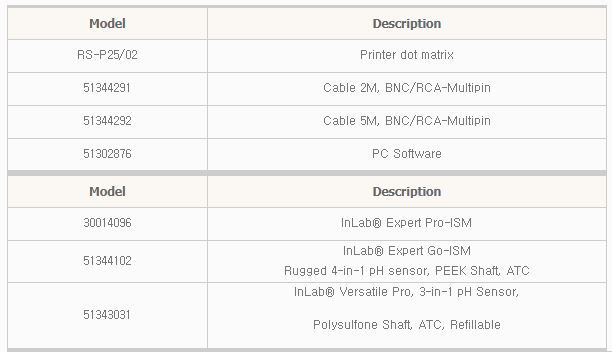 3) S220-Bio : “S220-Kit” 기본구성품, 단 전극만 InLab® Routine Pro-ISM 임